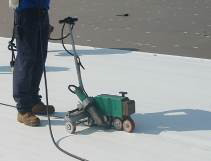 5.2自動焊接無法操作的部位手持式焊接機,采用熱風焊接,焊接時焊嘴與焊接方向呈45°角,壓輥與焊嘴平等并保持大約5mm的距離,焊接邊應有呈亮色熔漿滲出,不應出現漏焊、跳焊、燒焦或焊接不牢現象,焊接時不得損害非焊接部位的卷材;