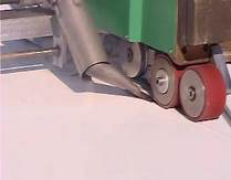 5.1防水卷材搭接部位焊接面擦拭干凈、干燥,采用自動焊接機進行焊接,由專人操作,保持2.3m/min的速度穩定行走;