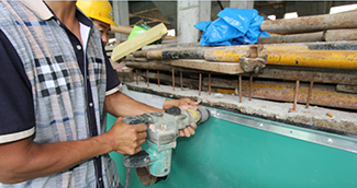 按比例準備好足量的水、膠粉、水泥,將膠粉緩慢加入水中,邊加邊攪拌,使膠粉均勻分散在水中。待膠粉分散均勻后,加入水泥,邊加邊攪拌,待攪拌均勻后方可使用。