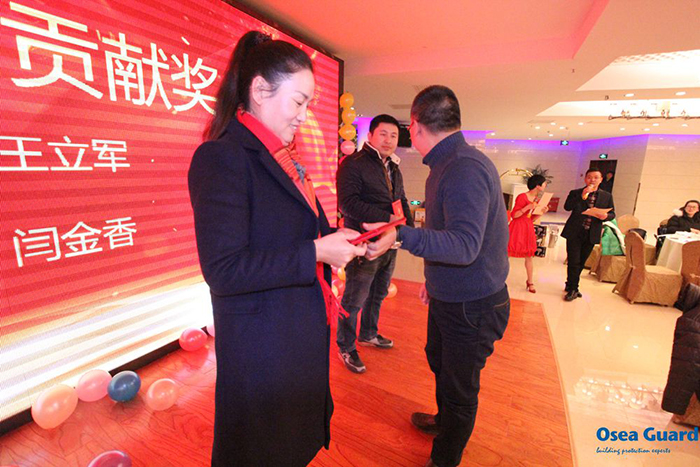 “上下同欲、飛越未來”,2017年1月20日下午,江蘇歐西建材科技發展有限公司2016辭舊迎新年終晚宴在洪澤湖國際大酒店酒店隆重舉行,公司各部門員工及邀約嘉賓120余人歡聚一堂,現場的氣氛一度燃燒成這個寒冬Z熱烈的火,溫暖著每個人。