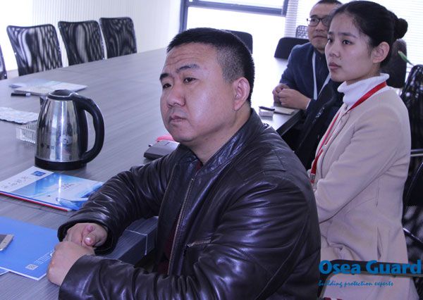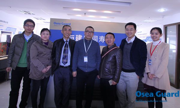 2016年3月7日上午,海南省防水協會會長孫慶生、常務副會長孫彥濤、江蘇鹽城市康泰建筑灌漿技術有限公司高工陳森森考察團一行蒞臨歐西建科南京總部進行參觀考察,歐西建科王洪波總經理、郭紅副總經理進行了熱情接待并陪同座談。