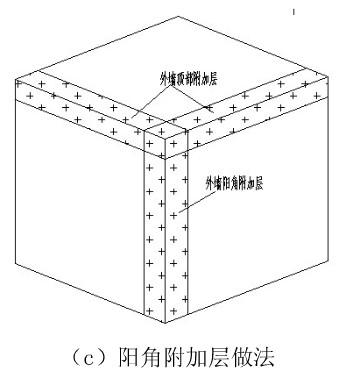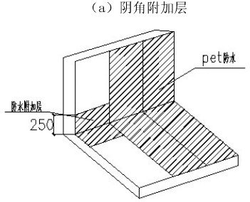1、陰陽角附加層做法如下,附加層總寬度為500mm,每側250mm。