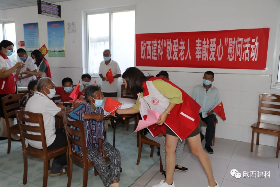 金風送爽,丹桂飄香,國慶將至,普天同慶。近日,江蘇歐西建材科技發展有限公司攜手淮安市洪澤區水上百合志愿者協會、區發改委黨總支、區朱壩街道社區衛生服務中心及愛心志愿者們前往朱壩街道敬老院看望慰問生活在這里的老人,開展了“敬愛老人 奉獻愛心”慰問活動。 歐西及發改委志愿者們為老人們送去了慰問品和防疫物資,并送上美好祝福。在親切的祝福問候聲中,讓每一位老人感受到了家庭般的溫暖,臉上綻開了幸福的笑容。現場醫護人員不僅為老人們一個個進行體檢,還給他們普及慢性病防治知識。