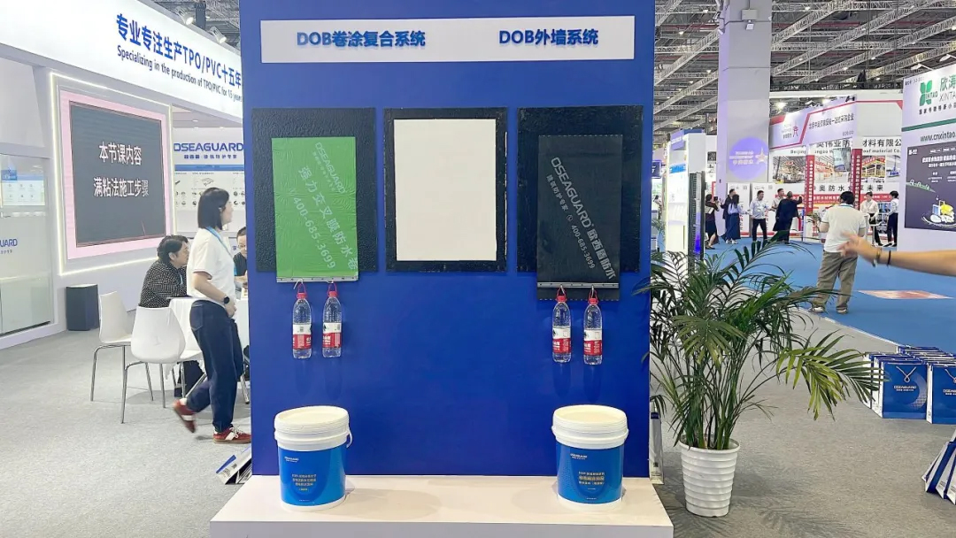 歐西盾防水位于5.2號館5016展位,由董事長王洪波帶領(lǐng)企業(yè)團(tuán)隊參與此次展會。展會中所展示的產(chǎn)品十分豐富,涵蓋了 “金屬屋面防水系統(tǒng)”、“TPS 鋼塑一體瓦系統(tǒng)”、“DOB 卷涂復(fù)合系統(tǒng)”、“DOB 外墻防水系統(tǒng)”以及 “公民建防水系統(tǒng)” 等,充分體現(xiàn)了品牌的多元性。歐西盾防水依靠成熟且完備的防水理念和高品質(zhì)的防水新產(chǎn)品,成功吸引了眾多人氣,眾多專業(yè)觀眾都被吸引過來,紛紛停下腳步進(jìn)行咨詢。