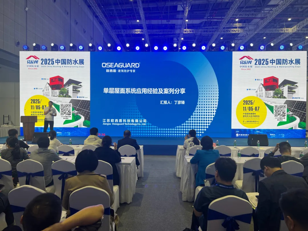 在展會舉行期間,創(chuàng)新防水系統(tǒng)技術(shù)研討會同步開展。歐西盾防水市場總監(jiān)丁彥臻在會上分享了《單層屋面系統(tǒng)應(yīng)用經(jīng)驗及案例分享》,并與行業(yè)專家展開深度技術(shù)交流,一同探尋防水行業(yè)未來發(fā)展方向。