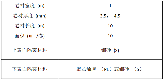 (APAO、APO) 為改性劑,摻入特殊改性劑改善材料抗剪切性能,聚酯胎基布為加強層,表面以細砂 (S) 做隔離材料所制成的可以卷曲的片狀防水材料。產(chǎn)品符合JC/T974-2005《道橋用改性瀝青防水卷材》的要求。