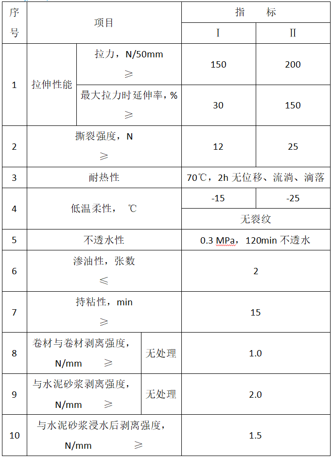 (4)高分子層與瀝青層雙重作用,材料具有優異的耐水性能。